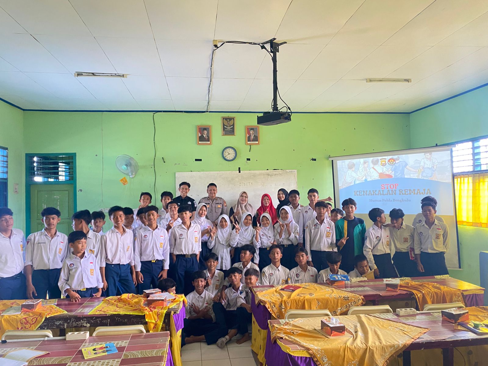 Kegiatan ini dihadiri oleh siswa-siswi kelas VII hingga IX, Kepala sekolah Nurhasana, S.Pd dan para guru. Dalam sosialisasi tersebut, Personel Subdit Penmas Bidhumas Polda Bengkulu bersama Duta Humas Polda Bengkulu