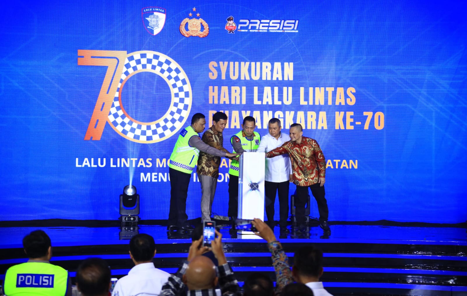 Penyematan Pin Emas Kapolri diberikan kepada: Dr. Drs. Agus Fatoni, M.Si. (Dirjen Bina Keuangan Daerah Kemendagri RI); Irjen Pol (Purn) Dr. Drs. Aan Suhanan, M.Si. (Dirjen Perhubungan Darat Kemenhub RI); dan Dr. Drs. Rivan Achmad Purwantono, S.H., M.H. (Direktur Utama PT Jasa Marga).