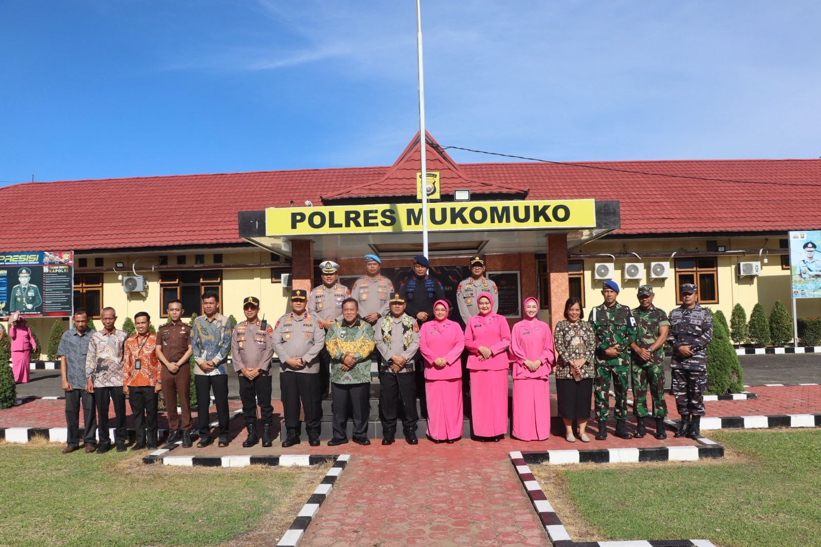 Setibanya di Polres Mukomuko, Kapolda Bengkulu dan rombongan disambut dengan pengalungan bunga oleh personel Polres Mukomuko dan Bhayangkari setempat. Suasana penyambutan berlangsung hangat dan penuh semangat.