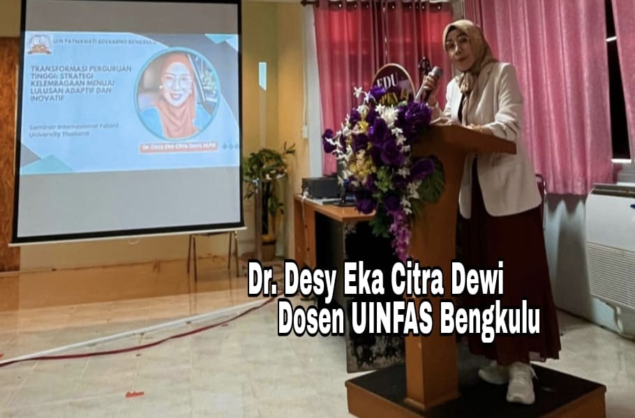 Thailand – Salah satu dosen Universitas Islam Negeri Fatmawati Sukarno (UINFAS) Bengkulu, Dr. Desy Eka Citra Dewi, M.Pd, menjadi pembicara dalam Seminar Internasional di Fatoni University Thailand. Kehadiran Dr. Desy sekaligus menjadi bagian dari upaya UINFAS memperkuat kompetensi akademis dan membangun jejaring internasional.