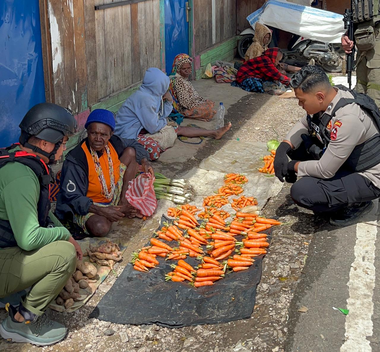 Dalam kegiatan tersebut, personel Ops Damai Cartenz berinteraksi langsung dengan para mama-mama penjual sayuran dengan cara berbelanja hasil bumi yang mereka tawarkan. Selain sebagai bentuk kepedulian terhadap pelaku ekonomi kecil, kegiatan ini juga menjadi sarana memperkuat kedekatan serta membangun komunikasi yang harmonis dengan masyarakat. Kehangatan dan keakraban pun terlihat jelas melalui sapaan serta senyum dari mama-mama pedagang yang merasa diperhatikan.