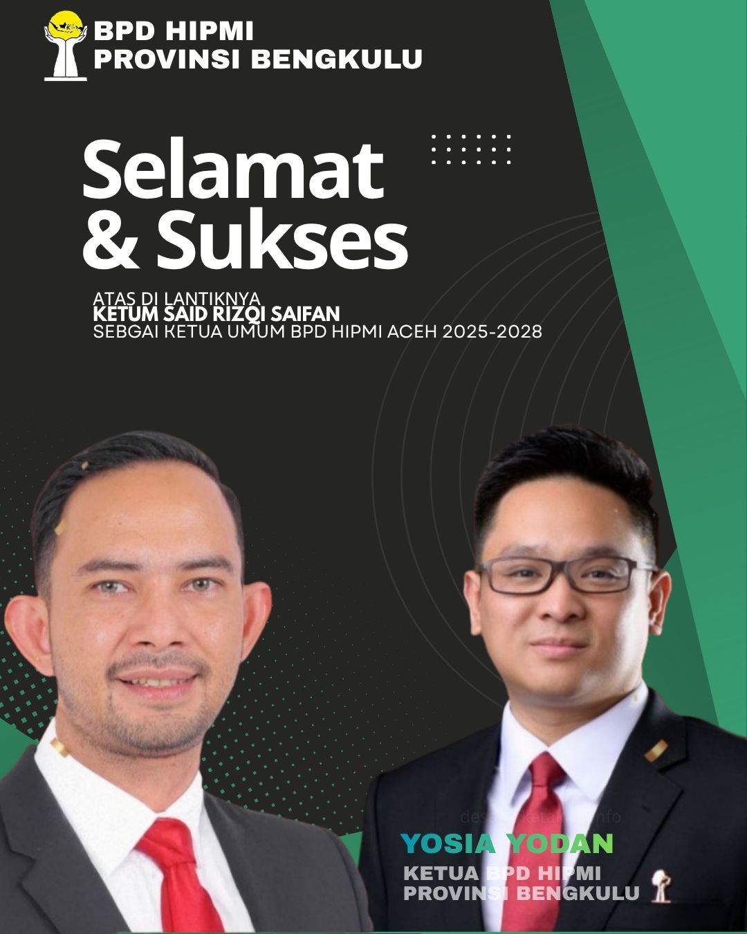 “Atas nama keluarga besar HIPMI Bengkulu, saya mengucapkan selamat kepada Saudara Said Rizqi Saifan atas amanah yang diemban. Semoga kepemimpinannya membawa HIPMI Aceh semakin solid dan progresif,” ujar Yosia, Senin (3/11).