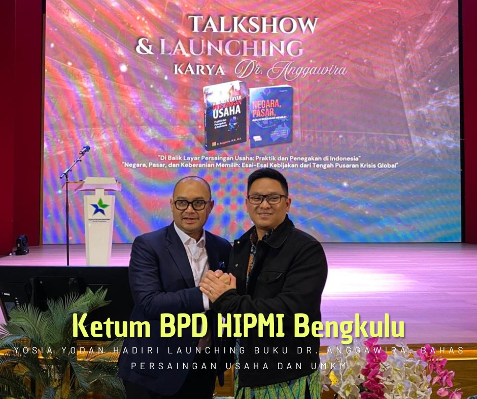 Katakritis.info, Ketua Umum BPD Himpunan Pengusaha Muda Indonesia (HIPMI) Bengkulu, Yosia Yodan, menghadiri talkshow nasional sekaligus peluncuran dua buku karya Dr. Anggawira yang digelar di Auditorium Perpustakaan Nasional Republik Indonesia, Jakarta Pusat, Kamis (9/1/2026). Kegiatan ini menjadi forum strategis lintas sektor yang membahas arah kebijakan persaingan usaha, penguatan koperasi, serta peran negara dalam menciptakan iklim usaha yang sehat dan berkeadilan, khususnya di tengah tantangan ekonomi global.
